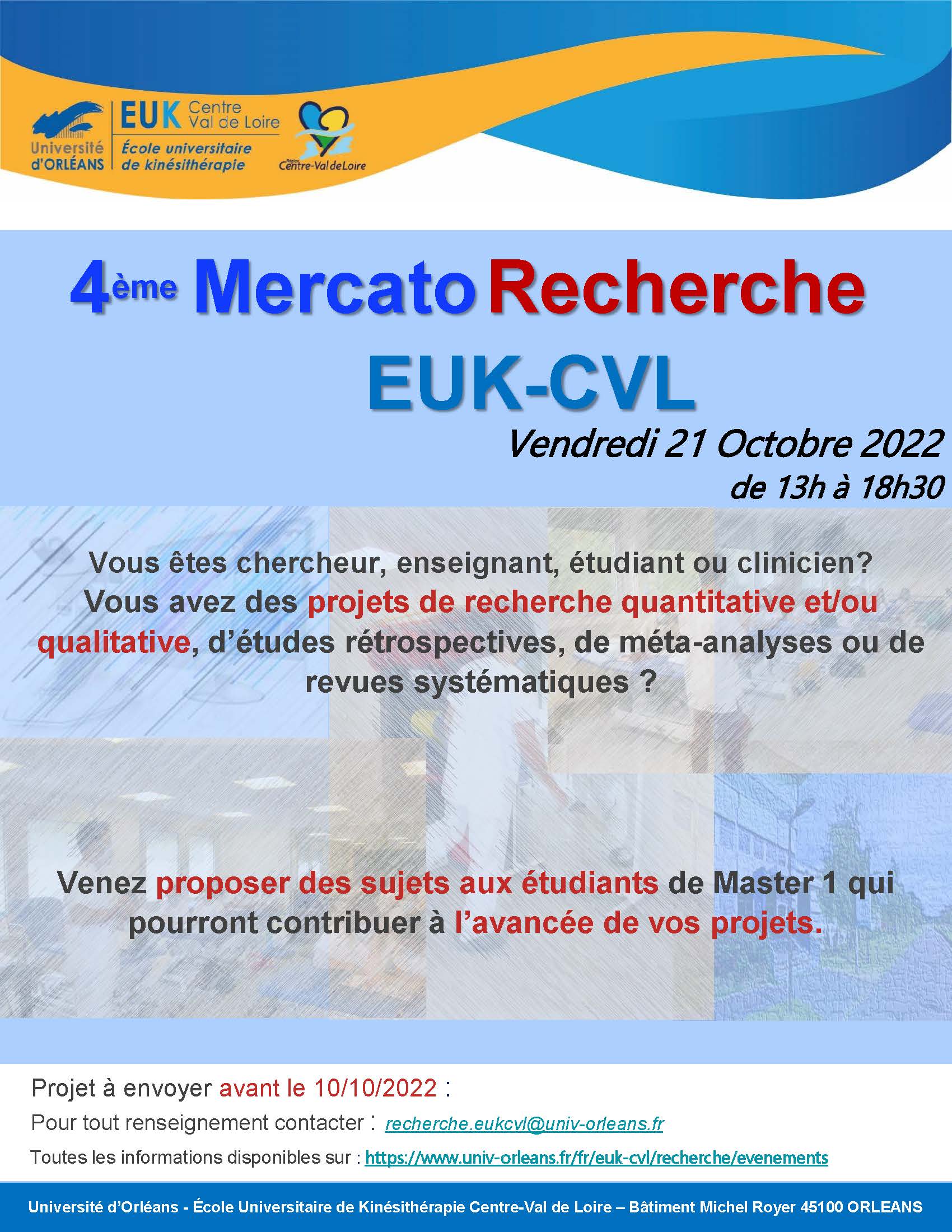 Il s'agira lors du Mercato de la Recherche de proposer aux étudiants de M1 des projets et sujets de recherche dans lesquels ils pourront s'investir et réaliser un travail expérimental et/ou scientifique avec vous en tant que directeur de mémoire pour la réalisation de leur mémoire de Master.