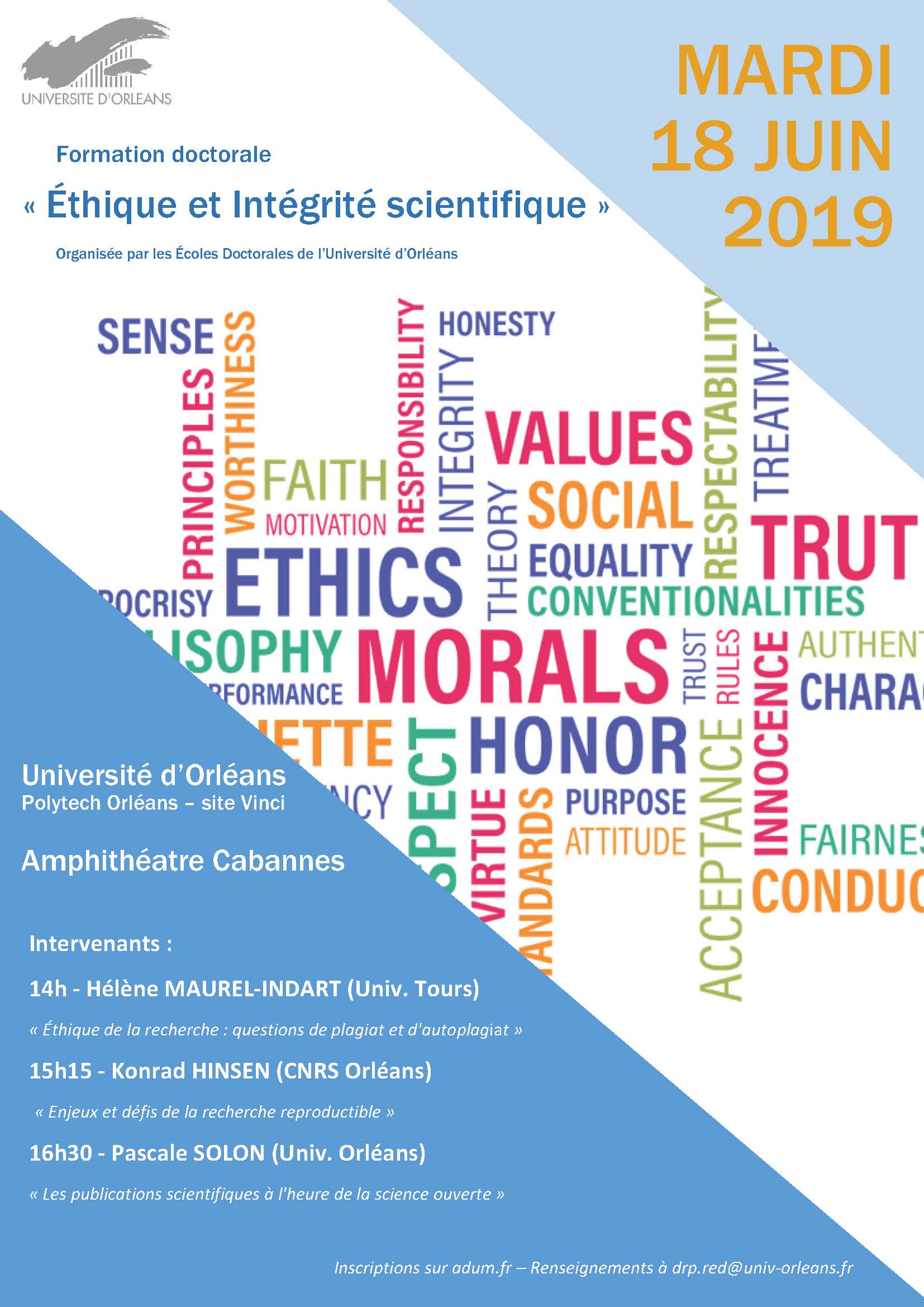 Les écoles doctorales de l'Université d'Orléans organisent une formation intitulée "Éthique et Intégrité scientifique".