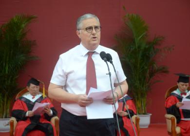 Dans le cadre du partenariat avec Central South University (Changsha, Province du Hunan, Chine), M. Luigi A Agrofoglio (vice-Président en charge des relations internationales) et Mme Kroubo Dagnini (Directrice des Relations Internationales) ont participé le 18 juin 2019, sur invitation de la Présidente de CSU, Mme TIAN Hongqi, à la cérémonie de remise des diplômes. Devant 13200 nouveaux diplômés, présents dans le stade sportif du nouveau campus de CSU, M. LA Agrofoglio a souhaité que "les diplômés conservent leur curiosité, leurs rêves, leur confiance et leur enthousiasme dans la prochaine étape de leur vie et transforment les nouveaux défis en opportunités. Ce faisant, la porte du succès leur sera toujours ouverte." Cette visite a été aussi l'occasion de réaffirmer la volonté partagée pour nos deux universités, de collaborer tant au niveau de la recherche que de la formation."